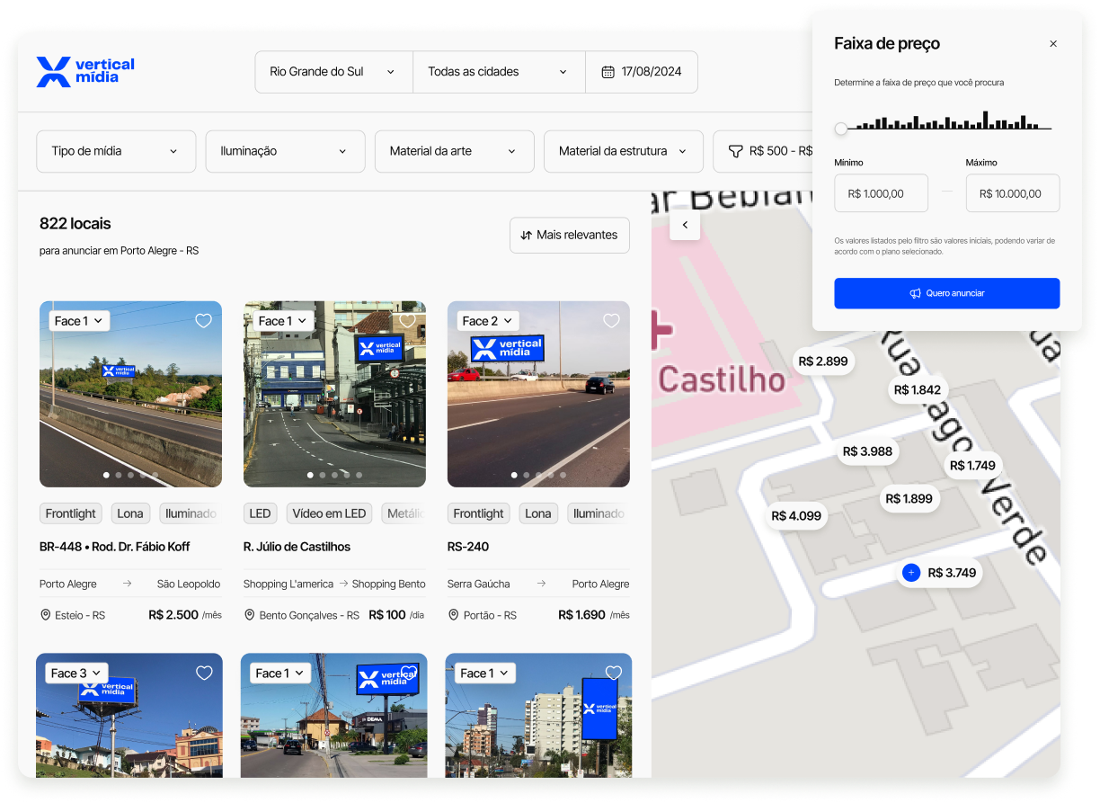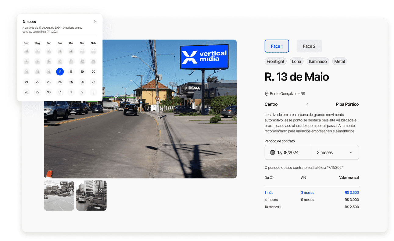 Você escolhe pontos de mídia externa em locais estratégicos que garantem exposição máxima para as marcas.